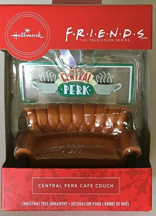 Obtener recuerdos agradables y revivir episodios favoritos de Amigos cada vez que vea este ornamento de Navidad que ofrece el sofá icónica y la ventana de la cafetería Central Perk .; Gran idea para un regalo de Navidad para los fans de la serie Friends.; Hallmark Adornos celebran caracteres y personalidades de películas contemporáneas y clásicas, programas de televisión, juguetes, entretenimiento y deportes. Cada ornamento festivo y de colección es perfecta para compartir con familiares y amigos. Caja Roja para Decoración navideña con text in inglés Amigos Todos nuestros productos estan en inglés SKU 7112004711