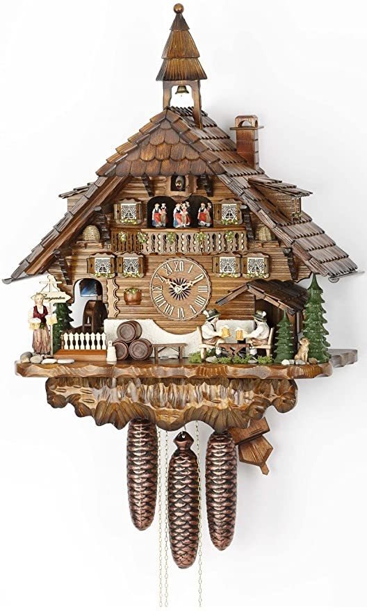 Movimiento: Regula – El reloj de cuco tiene un mecanismo de REGULA mecánica del líder de mercado SBS-FEINTECHNIK en el Bosque Negro / Alemania .; Noche apagado: Automático – El sonido se fuera a 9 p.m. de la tarde a 07:30 a.m en punto .; Tunes: Beber, beber, beber poco y hermano en Múnich se encuentra un Hofbräuhaus – Las melodías cambian cada hora entre beber, beber, beber poco hermano y una en Múnich, al Hofbräuhaus Todos nuestros productos estan en inglés SKU 15042029759