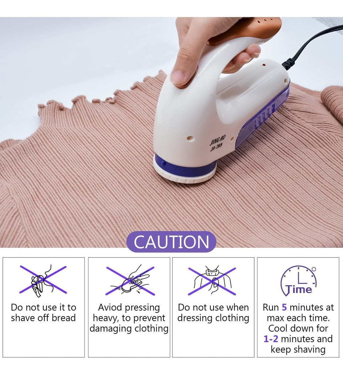 – This Afeitadora sin Funciona en prendas Delgadas y Ciertos Tipos de telas de ropa de Como seda, encaje, ropa bordada