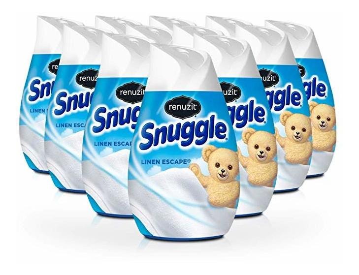Características del aroma del Snuggle de la ropa recién lavada con notas florales blancos; Gel ambientador de aire cono se ajusta al nivel de fragancia perfecta para usted; Para gran frescura continua en espacios pequeños; Fácil de usar, sin salidas o baterías necesarias; Hecho con gel biodegradable 98% Tamaño: 7 onza, Pack de 12 | Estilo: Escape de lino