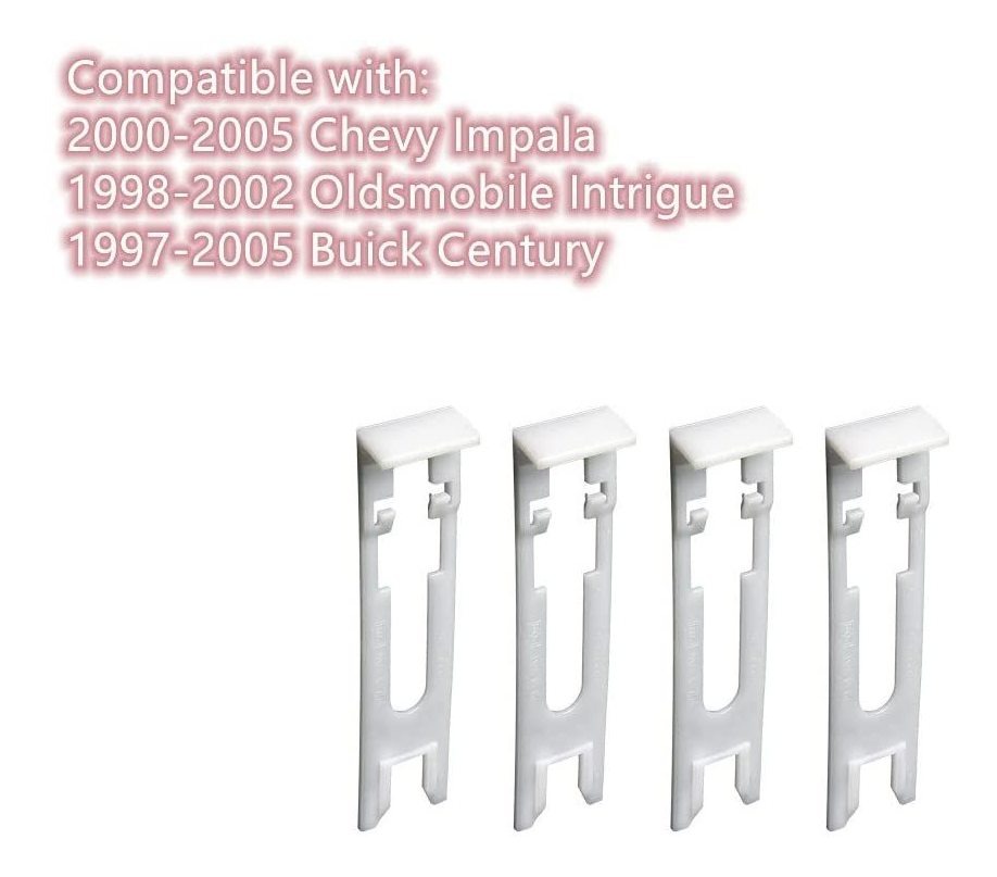 Número de pieza: 10298115 10284519; repuesto de calidad OEM.; Aplicación: retenedor de faros delanteros (reemplazo directo, sin necesidad de modificar); Tamaño: Cabeza: 4.449 in; Longitud del tallo: 1.122 in; Diámetro del tallo: 4-9/16 pulgadas; Agujero de ajuste: 1-1/8 pulgadas; Compatible con: este clip de retención de faros generalmente se adapta a modelos Chevrolet como Impala, Impala Limited, Monte Carlo; Buick, Oldsmobile; tales como 2000 2001 2002 2003 2004 2005 Chevy Impala, 2005 Winnie, 2004 Pontiac Grand Prix, 2005 bux. ick Century; El paquete incluye: 4 clips de sujeción de plástico para faros delanteros Compatible con: este clip de retención de faros generalmente se adapta a modelos Chevrolet como Impala, Impala Limited, Monte Carlo; Buick, Oldsmobile; tales como 2000 2001 2002 2003 2004 2005 Chevy Impala, 2005 Winnie, 2004 Pontiac Grand Prix, 2005 Buick Ury. Todos nuestros productos estan en inglés SKU 4022205886
