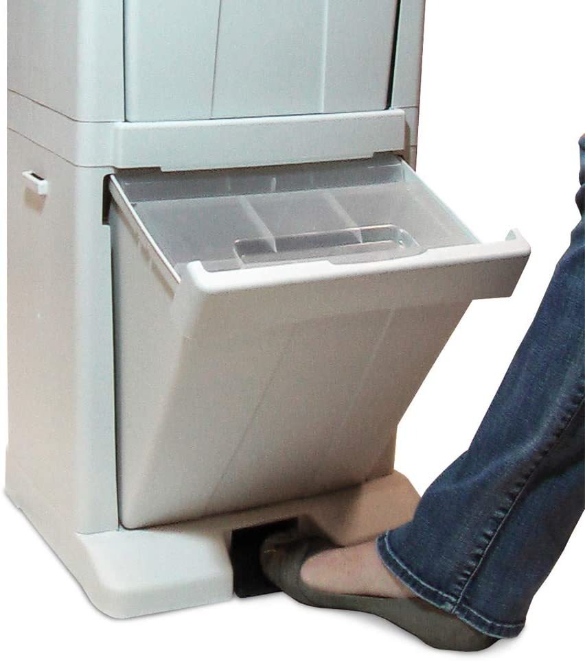 tapa de cierre a presión mantiene el olor y frescura en – las plagas fuera; El pedal ofrece un fácil acceso al compartimiento inferior; ganchos laterales mantienen correas para mascotas y bolsas de fácil comprensión; Cada contenedor de alimentos puede contener hasta 8 libras. de alimentos secos para mascotas; Incluye 1,5 taza cucharada del alimento Todos nuestros productos estan en inglés SKU 15042008201