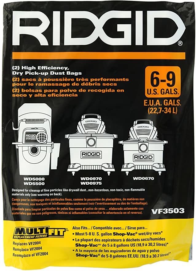 Especificaciones: Ridgid Vf3503 Polvo Bolsas