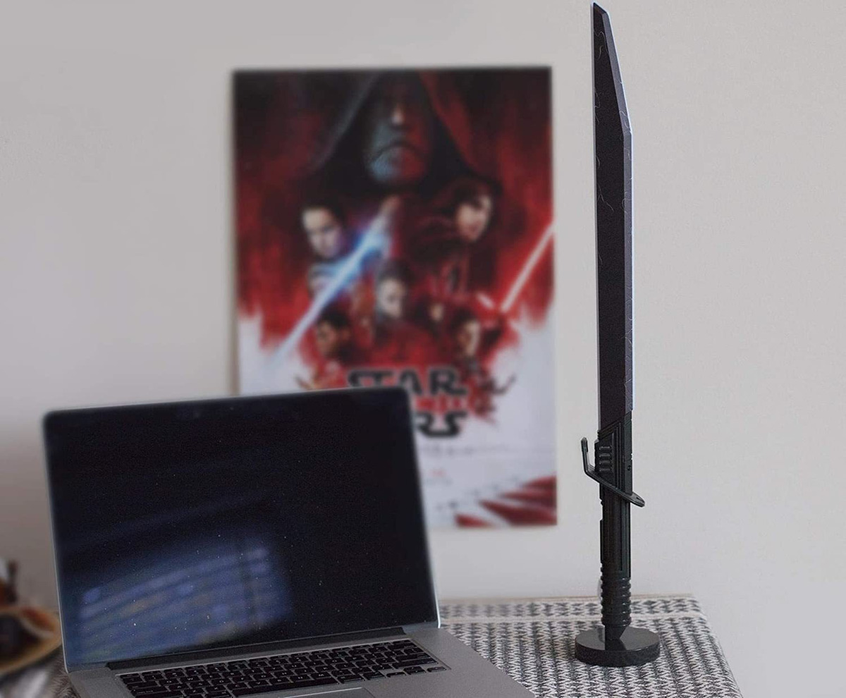 Decoración de Star Wars: brilla un poco de luz en tu fanático de Star Wars: el mandaloriano con esta luz coleccionable de escritorio de sable oscuro. Esta luz LED es perfecta para añadir un toque geeky a la decoración de tu hogar.; Diseño auténtico: mide aproximadamente 24 pulgadas, esta lámpara de escritorio temática se basa en el famoso sable oscuro de Star Wars: el mandaloriano. Requiere un montaje mínimo.; No requiere pilas: esta luz de escritorio de sable oscuro es alimentada por USB (cable incluido) y cuenta con un interruptor de encendido/apagado en línea para un fácil acceso. Mantén pulsado el botón de encendido/apagado para atenuar el brillo de la luz LED a un nivel personalizado.; Divertida decoración para el hogar: deja que tu fanático luzca el camino con esta luz LED de escritorio de sable oscuro. Perfecto en salas de juegos, salas de medios y dormitorios de los fans de Star Wars de todas las edades.; Mercancía oficial: añade a tu colección de Star Wars con esta lámpara de escritorio de sable oscuro de 24 pulgadas. Esta es una pieza de acento genial para cualquier fan que busque darle vida a la decoración de su hogar con elementos esenciales para la habitación. CONFIGURAR EL MOOD CON EL DECOR DE STAR WARS Trae la aventura a una galaxia cerca de ti! Haz alarde de tu fandom con esta luz de escritorio de Sable Oscuro de Star Wars. Modelada según el icónico sable de luz visto en las garras de Moff Gideon en Star Wars: The Mandalorian, esta lámpara de mesa de 24 pulgadas se ve muy bien conectada a tu ordenador y se muestra en tu escritorio. Los aficionados también pueden reconocer el Sable Oscuro por sus apariciones en los programas animados de Star Wars, incluyendo The Clone Wars y Star Wars Rebels. Una vez manejado por personajes populares como Pre Vizsla, Sabine Wren, Bo-Katan Kryze y Darth Maul, ahora los fans pueden llevarse a casa el Sable Oscuro de hoja negra y añadirlo a su colección. Ilumina tu ventilador Esta lámpara de escritorio de diseño auténtico utiliza luz LED de larga duración y alimentación USB para mantener tu fandom brillante durante años. Esta divertida pieza de iluminación para decoración del hogar cuenta con un interruptor de encendido/apagado en línea para un fácil acceso. También puede controlar la configuración de brillo manteniendo presionado el botón de encendido/apagado para atenuar la luz LED a un nivel personalizado. Para los completistas de Star Wars o nuevos aficionados, esta luz de escritorio de sable oscuro coleccionable es el regalo perfecto. Todos nuestros productos estan en inglés SKU 91221005153