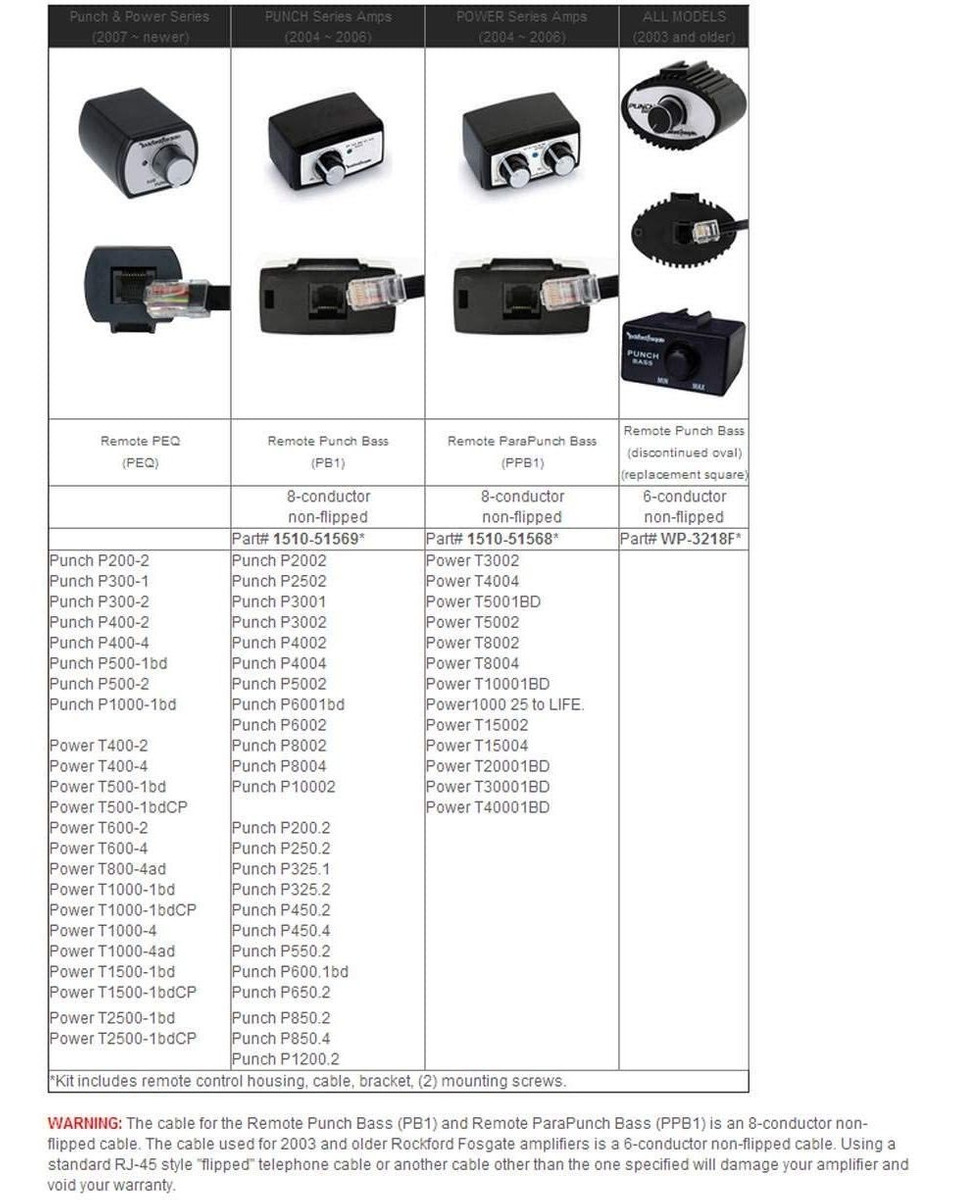 Rockford Fosgate PPB1 Parapunch Series – Pomo para Bajo; Control Remoto de Graves Para-Punch EQ CON FRECUEENCIA VARIABLE DE 35-70 HZ Y Aumento de Graves de 0 DB A 18 DB.; Incluya Perilla de Bajo, Cable, Clip de Montaje, Tornillos de Montaje.; Producto Nuevo.; Número de Pieza: PPB1. Publicidad: EL CABLE EL CABLE PARA EL MANDO A DISTANCIA PARABUNCHA DE LA PAZA (PPB1) ES EL CABLE DE LA ONU SIN VOLTEADO DE 8 CONDUCTORES. EL CABLE UTILIZADO PARA LOS AMPLIFICADORES ROCKFORD FOSGATE DE 2003 Y MÁS ANTIGUOS ES CABLE NINGÚN Volteado de 6 conductores. EL USO DE LA CABLE TELEFÓNICO ESTÍNAR RJ-45 VOLTEADO U OTRO CABLE DISTINTO DEL ESPECIFADO DAÑARÁ SU AMPLIFÍFICO Y ANULARÁU SU GARANTÍA. El Ecualizador Remoto Para-Punch Bass Cuenta Con Un Rango De Frecuencia Variable de 35-70 Hz Y Un Aumento De Graves De 0 DB A 18 DB. CABLE Y ACCESORIOS DE MONTAJE INCLUIDOS. Reemplezo de Graves Remoto Con Cable Con Frecuencia Variable Y Aumento Para Amplificadores Seleccionados. SOMOS UN DISTRIBUIDOR AUTORIZADO DE ROCKFORD FOSGATE. Todos nuestros productos estan en inglés SKU 21072101891