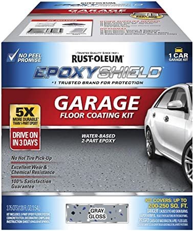 Rust-Oleum EPOXYShield Garaje Revestimiento de Pisos que crea superficies calidad sala de exposición. recubrimiento ultra resistente ofrece un atractivo acabado de alto brillo que resiste el desgaste y deterioro de mantener los pisos en su mejor apariencia durante años. El kit incluye revestimiento 2-parte epoxi a base de agua, limpiador concentrado, virutas decorativas, la varilla de agitación, instrucciones detalladas y un video instructivo.