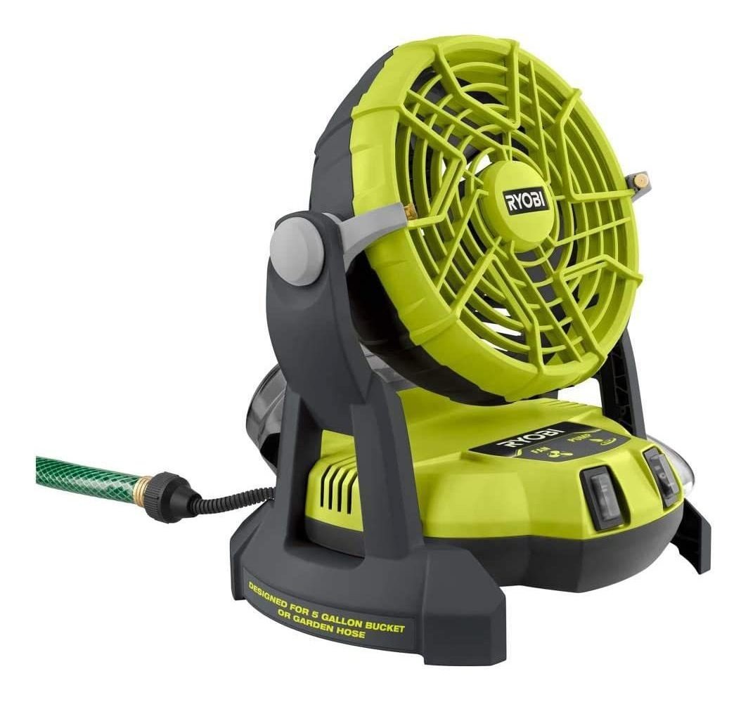 Especificaciones: Ryobi 18 Voltios One Cubo Top Fan Kit De Nebulización