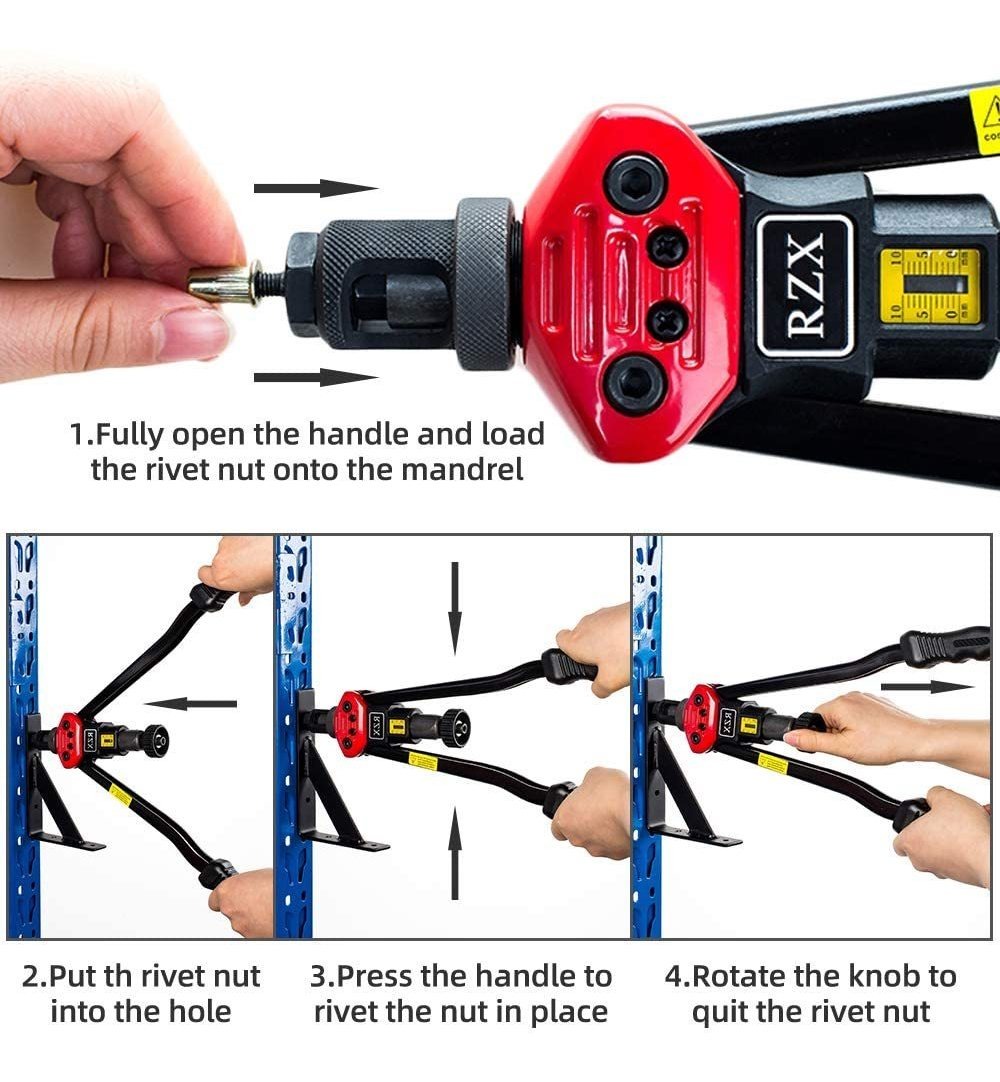 Especificaciones: Rzx – Remachadora De Tuerca De 16 Pulgadas Con Sistema De Aj