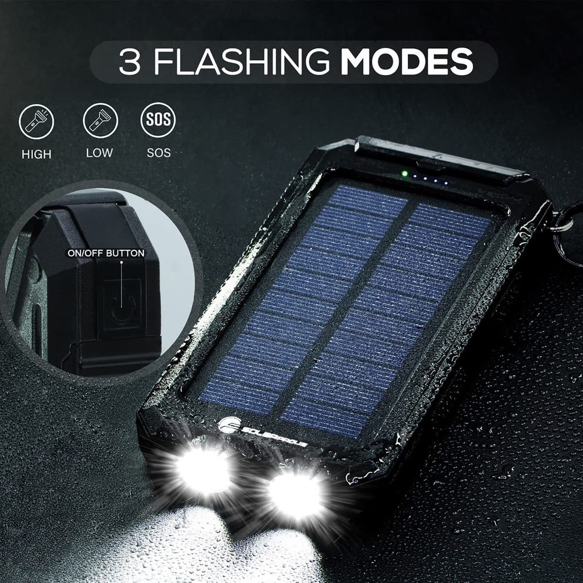 Dos opciones de carga: (carga principal) puedes utilizar el cable micro USB incluido y conectarlo a tu enchufe de pared o (EMERGENCIA) puedes poner el cargador bajo la luz solar directa para cargarlo; Alta capacidad: batería integrada de 20000 mAh, este cargador es una gran opción para viajes de camping u otras actividades al aire libre donde las salidas son escasas; Puertos de carga de doble salida USB y carga rápida: te permiten cargar 2 dispositivos digitales simultáneamente, también, carga tu teléfono muy rápido con el puerto USB 2.1; Dos características extra geniales: una linterna y un gancho, en la parte posterior hay una linterna (ideal para tener en un pinchazo! ), con un botón de encendido en el lateral (botón de encendido 3 segundos. GENTLY para encender la linterna de alta intensidad, para cambiar entre modos haz clic en uno). Con un gancho incluido, puedes colgar el cargador de una mochila; Debido a la intensidad de la luz solar y la tasa de conversión del panel solar, puede tardar mucho tiempo en cargar completamente el banco de energía. Te sugerimos que lo recargues completamente a través de una toma de pared Diseño exclusivo; Cargador solar Solarprous Perfecto para cualquier ocasión, en la ciudad o en el campo, nuestra variada gama de cargadores solares nunca te dejará, excelente herramienta de supervivencia, te sorprenderá la amplia variedad de usos y accesorios que harán tu vida más fácil. Increíble accesorio para tu teléfono celular, asegura tu independencia de carga con los bancos de carga Solarprous. Disfruta de tus caminatas con intensidad completa sin preocuparte por la carga de tu teléfono. Cargador de teléfono Solarprous Power Bank / carga tu teléfono muy rápido con el puerto, goma protectora, a prueba de polvo de increíble calidad y resistencia. Para recargar completamente tu batería, te sugerimos que lo recargues completamente a través de la toma de corriente, prueba de su potencia, para tus emergencias, carga de panel solar, luz solar directa para cargar. El paquete incluye: 1 cargador solar USB dual, 1 cable de carga USB de 3 pies, 1 gancho, 1 manual de uso (idioma español no garantizado). Diseño exclusivo. Cargador solar/dos opciones de carga (carga principal). Puedes utilizar el cable micro USB incluido, enchufe de pared, puedes poner el cargador en la luz solar directa para cargar. Batería integrada de 30000 mAh / Excelente opción para viajes y actividades al aire libre / USB dual / carga rápida / 2 dispositivos digitales simultáneamente / sofisticación. Tiene una linterna, luz LED, botón de encendido lateral, gancho con bloqueo que puedes colgar de una mochila, doble clic en el botón de encendido, doble clic para apagar. Cargador de teléfono Solarprous Power Bank con linterna, negro B, carga tu teléfono muy rápido con puerto USB 2.1 / goma protectora. Para recargar completamente la batería, te sugerimos que la recargues completamente a través de la toma de corriente, prueba su potencia, para tus emergencias, carga de panel solar, luz solar directa para cargar. No dejes de tener un elemento de excelente calidad y al alcance de tu mano / que tu trabajo no se queda sin carga y tu diversión sin interrupciones. Todos nuestros productos estan en inglés SKU 91221081426