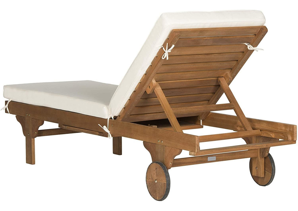 Esta silla de salón añade comodidad elegante a cualquier espacio de vida al aire libre; Con una hermosa tapicería de color beige neutro para los cojines (incluido) y acabado de madera marrón, esta pieza también incluye una bandeja deslizante integrada para contener bebidas u otros accesorios; Las ruedas integradas permiten una fácil movilidad para una persona; Perfecto para cualquier espacio al aire libre; Capacidad de peso: 700 libras; Hecho de madera de eucalipto de alta calidad; Perfecto para su uso en el patio, en el patio o en la piscina para tu placer de descansar; Safavieh ha sido una marca de confianza en muebles para el hogar durante más de 100 años, proporcionando artesanía de calidad y un estilo inigualable Color:beige, (Natural/Beige)