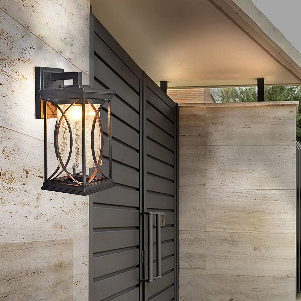 Diseño único: con un marco de metal negro mate con inserciones de vidrio agrietado perfectamente formadas. Complementa estilos tradicionales y contemporáneos, esta pieza proporcionará un brillo acogedor perfecto para tus entradas al aire libre.; Dimensiones del producto: 14.37 pulgadas de alto x 6.3 pulgadas de ancho. Profundidad desde la pared: 8.07 pulgadas. Tamaño de la placa trasera: 6.3 pulgadas de alto x 4.53 pulgadas de ancho.; Requisitos de la bombilla: utiliza bombillas de base E26, 60 W máx. (no incluidas). Regulable cuando se utiliza con bombilla regulable e interruptor de atenuación compatible.; Instalación rápida: el diseño inferior abierto permite a las personas reemplazar las lámparas sin quitar ninguna pantalla de cristal. El paquete ya incluye todos los accesorios de montaje, y una instrucciones de instalación (idioma español no garantizado) y el cristal es fácil de limpiar.; Servicio sincero: Garantía limitada de 1 año. Si el producto que recibes está roto accidentalmente o tiene otros problemas, por favor póngase en contacto con nosotros directamente por correo electrónico, le enviaremos el nuevo cristal o los accesorios de forma gratuita. Con un marco de metal negro mate con inserciones de cristal agrietado perfectamente formadas. Complementando estilos tradicionales y contemporáneos, esta pieza proporcionará un brillo acogedor perfecto para tus entradas al aire libre.