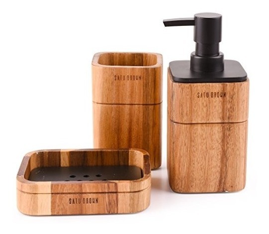 Especificaciones: Satu Brown De Madera Accesorios De Baño Set 3 Piezas Incluye
