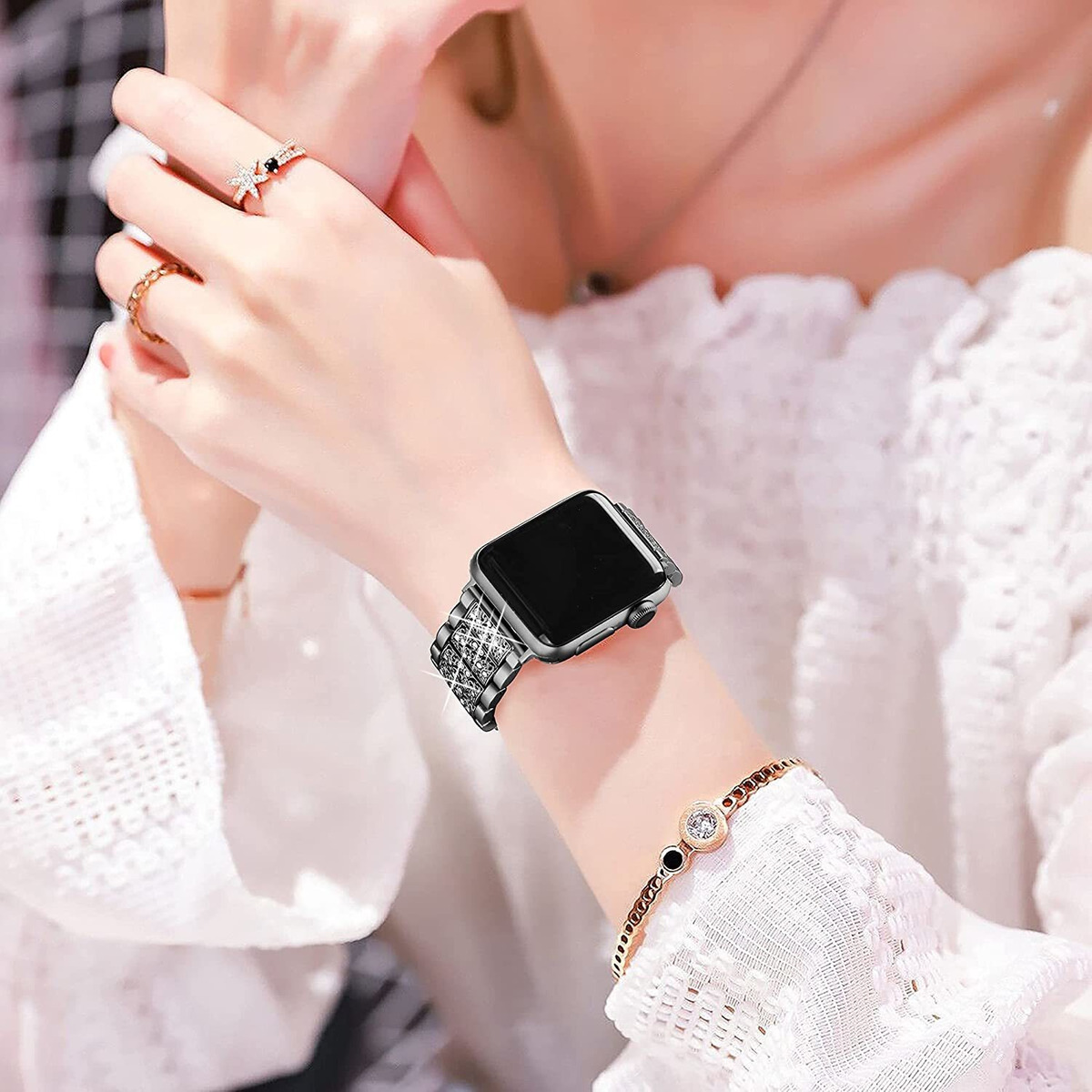 Compatible con todos los modelos de Apple Watch, incluyendo Apple Watch de 38 mm, 40 mm, Series 4 (2018), Series 3 (2017), Series 2 (2016) y Series 1 (2015), metal de alta calidad, adecuado para muñecas de 5.5 8.1 pulgadas.; Brazalete Apple Watch de 38 mm, 40 mm, con diamantes de imitación está destinado a obtener los cumplidos diarios. Los brazaletes de reloj de 38 mm, 40 mm para mujer que te darán un impulso a tu look.; Cierre plegable que permite un funcionamiento sencillo y seguridad. Viene con una herramienta para cambiar el tamaño de la correa, fácil ajuste.; Elegante diseño y juego con diamantes de imitación para mujer. Va con cualquier joyería! Perfecto para ocasiones de trabajo y disfraces.; – Pide tus brazaletes de reloj de 38 mm con confianza. Todos nuestros productos estan en inglés SKU 91221081486