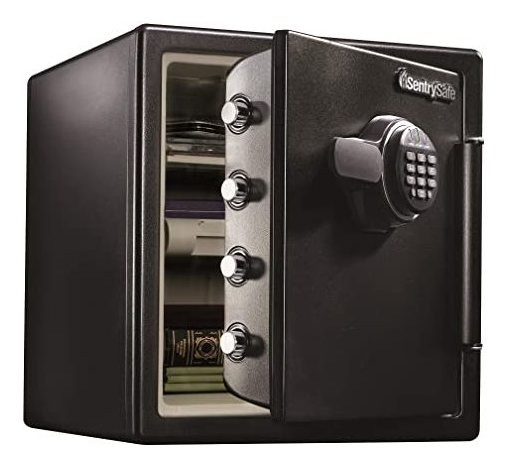 La caja fuerte ignífuga this Clasificada por UL para soportar 1 hora a 1700 F y mantener La Temperatura interior Segura párr Documentos irreemplazables, Objetos de valor, DVD y USB; Verificado por ETL para soportar Una Caída de 14,8 pies de Durante la ONU Fuego y Permanecer cerrado .; La caja fuerte impermeable this verificada por ETL para 24 horas de Protección en el agua de Hasta 7,9 in de Profundidad, ofreciendo tranquilidad en Caso de inundación .; Establece tu Propia Combinación digitales de Seguridad Contra Incendios párrafo Una fuerte direction seguridad; Combinación digital de caja fuerte Cuenta con cuatro pernos de bloqueo en vivo, construcción de acero, barra de bisagra resistente una palanca, estante, bandeja y hardware de atornillado .; Exterior: 16.3 Pulgadas. de ancho x 19.3 Pulgadas. de Profundidad x 17,7 en de alto.; La Puerta Requiere 14.75 Pulgadas. de Espacio para abrirlo Completamente; Interior: 12.6 Pulgadas. de ancho x 11.9 Pulgadas. Profundidad x 13,8 en Altura.; Capacidad Gran de 1,23 tartas cúbicos; Pesa 87 libras .; Para Un Rendimiento Óptimo, SentrySafe Recomienda EL USO de cuatro pilas alcalinas AA de Alta Calidad con Una Fecha de caducidad de 8 a 10 años A partir del año en curso. Las Baterías recargables genéricas y el menudo sin un Tienen La vida útil Necesaria para soportar el USO Largo Plazo una. Estilo: Teclado Digital, estante, bandeja