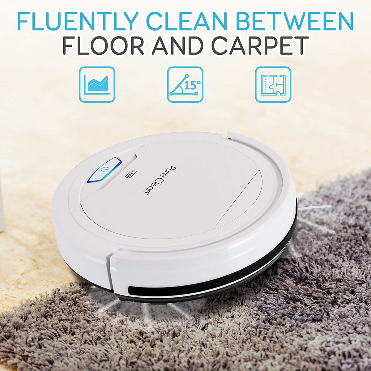 Tiempo de funcionamiento de 90 minutos: el robot electrónico ha mejorado la batería de iones de litio y está bien sintonizado con una programación de sensor más automatizada que mejora los errores al atascarse y subir por encima de un umbral; 1 toque: aspiradora robótica inalámbrica para azulejos, suelos de madera dura y alfombras cortas, Smart 1 Touch Power. La aspiradora robótica tiene sensores anticaídas que detectan automáticamente un hueco y lo guía para que no se salgan de las escaleras; Perfil ultra bajo de 2.9 pulgadas: el robot aspirador eléctrico blanco cuenta con un perfil bajo de 2.9 pulgadas de grosor que aspira a través de cualquier comedor o piso de cocina y es lo suficientemente pequeño como para caber debajo del sofá o la cama de tu casa; Cepillos giratorios duales: el robot limpiador de suelos tiene 2 cepillos laterales automáticos que extienden el alcance de la aspiradora y giran para atrapar la suciedad interior y los desechos en las esquinas de las habitaciones y en azulejos o suelos de madera dura; Hipoalergénico y apto para mascotas: el filtro de aire automático para aspiradoras mantiene el aire puro y las partículas de polvo finas atrapadas dentro del cubo de basura. El diseño sin cepillo y la potente succión no se obstruye con el pelo de mascotas de perro o gato como las unidades con un cepillo giratorio debajo del cepillo Características: Mantenlo limpio: barre, polvo y aspira Capacidad de limpieza versátil y conveniente para el suelo Navegación inteligente de camino de limpieza autoprogramada Diseño de perfil bajo deslizante debajo de los muebles Sensores de escalera y carcasa protectora de parachoques Detección de obstáculos limpia alrededor de objetos del hogar Funciona en madera dura, linóleo, azulejos, suelos de alfombra bajos/duros Práctico cubo de recogida de polvo que se abre para una eliminación rápida al – Bolsa automática – Diseño de menos para una fácil limpieza – Funcionamiento con un botón – Batería recargable integrada – Cepillo lateral giratorio doble que levanta los desechos – Incluye carga / adaptador de corriente – Perfecto para el hogar u oficina Lo que hay en la caja: – Aspiradora inteligente – Batería recargable – Cargador / adaptador de corriente – (2) cepillos desmontables – Filtro de polvo lavable Especificaciones técnicas: – Capacidad del contenedor de polvo: 0.2 L – Tiempo de carga medio: 4 horas – Tiempo de funcionamiento al vacío: es – Tipo de batería: 1 1,1 V Li-iOn, 1500 mAh – 16,65 Wh. Fuente de alimentación: 120/240 V. Dimensiones (largo x ancho x alto): 11,0 x 11,0 x 2,9 pulgadas Todos nuestros productos estan en inglés SKU 91221089394