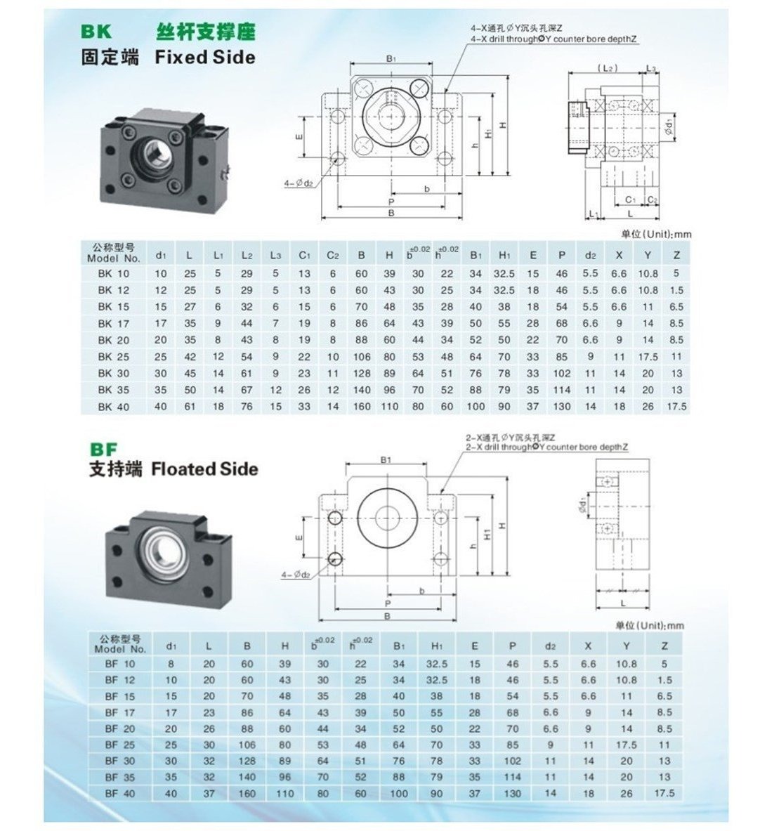 1pcs BK12 / BF12 Soporte End, con tuercas de seguridad y anillos de seguridad