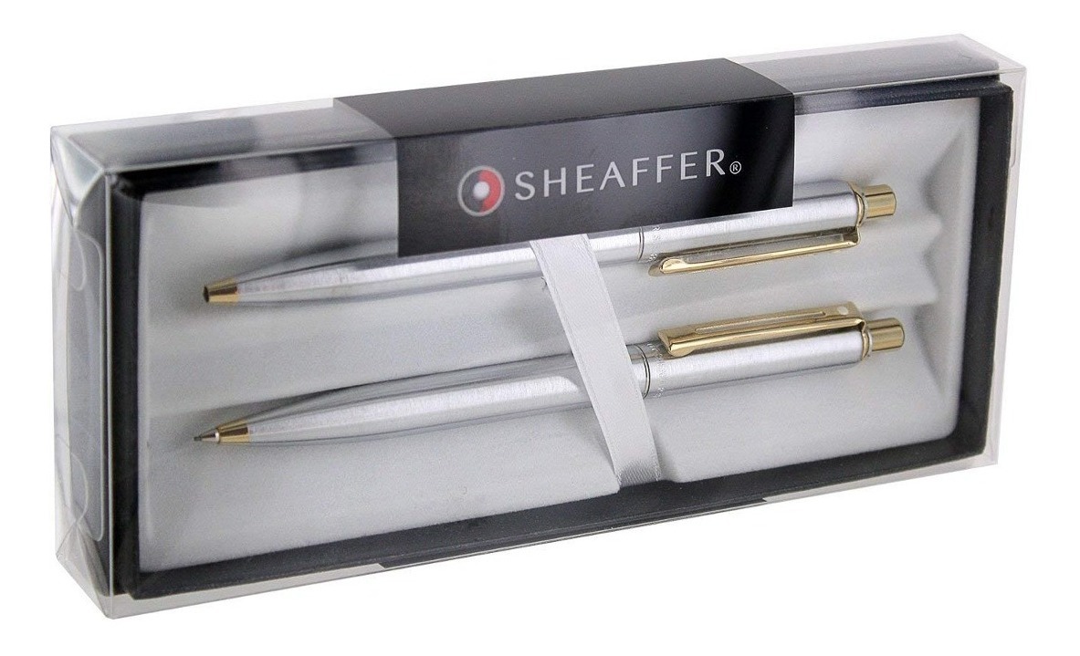 Cromo cepillado Cap & Barrel, Trim placa de oro; perfil delgado, mecanismo de pulsador; Excelente regalo para un profesional; Incluye 1 negro plomo Sheaffer ‘K’ bolígrafo recarga y 0,7 mm lápiz; Empaquetado en una caja de regalo estándar Un simple clic de un botón y … ya está listo para escribir … El Sheaffer Sentinel cuenta con un mecanismo de pulsador conveniente que le permite activar la punta de la pluma al instante. Es tan fácil que incluso se puede hacer con una mano detrás de la espalda. El Sentinel encaja en prácticamente cualquier cartera o bolsillo calendario, lo que es perfecto para el uso diario práctico. Su perfil delgado clásico permite una experiencia de escritura agradable. Consideramos que es un excelente regalo para el estudiante, profesional … o profesional. Todos nuestros productos son de Estados Unidos SKU 26091842316