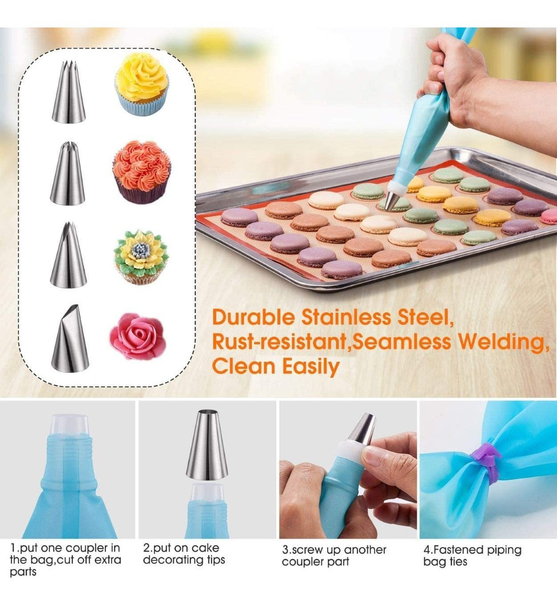 SILICONA HORNEAR MAT ANTIADHERENTE fácil limpieza -No más raspando la superficie! Antiadherente permite la eliminación de alimentos sin esfuerzo y sin residuos. Incluso azúcar quemada y la grasa caiga por sí en, simplemente lavar las esteras de hornear con la mano o enjuague con agua tibia y jabón y dejar secar al aire, o el lugar en el lavavajillas (rejilla superior solamente) .La cocción silicona esteras son el sueño de un panadero en ahorrar tiempo limpiando, la prevención de un desordenado horno, pan.Save sucio en hornear hojas y sartenes! Macaron medidas estera 11.6 x 16.5 ajuste de 13 molde para hornear x 18 .; Horno de seguridad BAKE LIKE A AT Professional -Macaron estera hecha de la silicona grado más alto comida de calidad, de hasta 480 grados F, diseñados para su uso en todos los tipos de hornos (excepto los hornos de fuego directo), que proporciona la distribución de calor consistente y promueve la uniformidad de cocción y Browning, obtener resultados consistentes y no más quemado y bajo-horneado spots.Features guían líneas de macarrón 30 para cada hoja, la plantilla le ayuda a aplicar la cantidad justa de pasta de macarrones, galletas perfectas .; SILICONE HORNADA MAT kit de actualización hornear y asar -El grado alimenticio estera macarrón de silicona, elimina el uso para cocinar sprays, grasas y aceites, la reducción de calorías en su comida y reduce la ingesta de colesterol, sustancias cancerígenas producidas por los aceites de cocina sometidos a altas temperaturas .Con mejoró macarrón estera crear platos libres de grasas, que no absorben olores o sabores, a mantener su healthy.Stop compra de papel de pergamino caro familia! ahorra dinero y reduce los residuos en nuestro entorno .; MACARON MAT Versitility y reutilizable DURADERA – Las opciones de cocción son casi infinitas con el macarrón de silicona antiadherente estera, incluyendo caramelos pegajosos, pan pegajosa, o incluso pescado al horno. Y el uso como una estera de pastelería para antideslizante antiadherente masa rolling.The cocción silicona hojas son lo suficientemente resistentes a las espátulas de metal mango o utensilios sin daño (evitando bordes dentados) fuerza .Superior, es flexible pero resistente a la rotura, diseñado para soportar miles de usos bajo extrema condiciones (-40 F a 480 F); 100% Garantía de devolución -PLS en cuenta todos los elementos (bolsas de pastelería y consejos de la tubería) en el interior de nuestro don box.We muy contentos de que nuestros clientes están encantados con nuestra hornear de silicona mats.We ofrecen un 100% de garantía de si usted no está completamente satisfecho. Volver en cualquier momento para un reembolso completo de su compra price.No preguntas hechas! Su completa satisfacción es nuestra prioridad. Nuestra silicona prima macarrón hornear estera kit de hacer el regalo perfecto para bodas, estreno de una casa Partes, Navidad y el Día de Acción de Gracias Todos nuestros productos estan en inglés SKU 4032124104