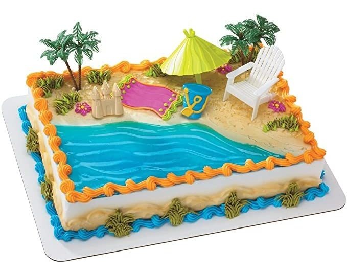 Hacer Una gran piscina Splash en tu Próxima fiesta Con Este kit de Decoración de pasteles temática de playa . Esta silla de playa y sombrilla Cake Decoración coordinará perfectamente con su lado de la piscina, la playa o una fiesta temática luau. Todos nuestros productos estan en inglés SKU 29102021662