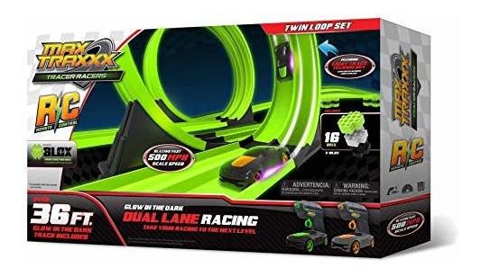 juego de carreras de RC completa; Para 1 o 2 jugadores; Incluye 2 coches RC inalámbricos, 2 controladores y brillan en la oscuridad pistas; Incluye 36 pies de la pista, 2 bucles y 4 esquinas Todos nuestros productos estan en inglés SKU 8111920750
