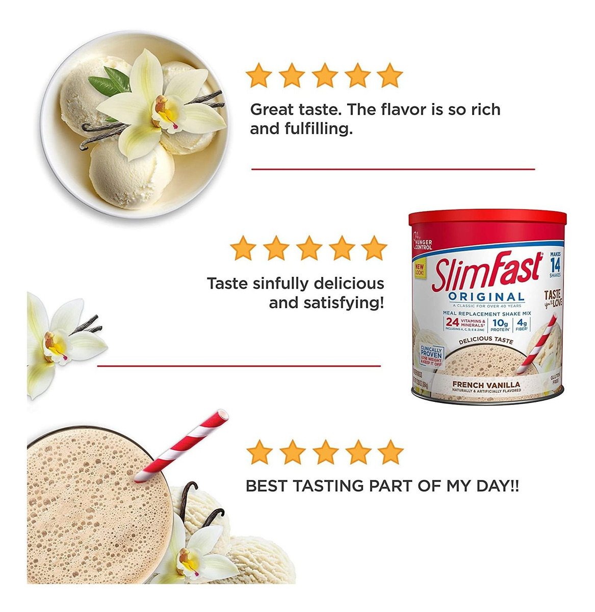 Sabor Gran – Sabor clásico de vainilla francesa, SlimFast original de Reemplazo de comida batidos Mezcla en polvo hijo Una deliciosa Manera de perder peso; Repleto de Proteínas, Vitaminas y Minerales – El Polvo de Mezcla de batido de Reemplazo de comida original de SlimFast Es Una Fórmula equilibrada repleta de 24 Vitaminas y Minerales ESENCIALES; Reducir el Hambre: Los polvos de Mezcla de batidos originales de SlimFast un son producto de Reemplazo de comida excepcional Que reducir el Hambre Hasta cuatro horas para mantenerte satisfecho; Apoyo digestivo: los polvos contienen Originales SlimFast 0,14 oz de fibra Para Ayudar un PROMOVER Una mejor digestión y Son Libres de gluten; Reemplaza dos comidas por día: una cuchara de Tamaño Único de 0,92 oz Contiene ONU tercio de tu ingesta Diaria Recomendada de Vitaminas y Minerales ESENCIALES, ESTO Mantiene tu cuerpo Funcionando fuerte Durante el día; Parte del plan de SlimFast – el plan de SlimFast offers Flexibilidad y Simplicidad Para Hacer perder peso bronceado Como Fácil 1 – 2 – 3 Nombre del Sabor: Vainilla Francesa. | Tamaño: 12.83 onza (paquete de 1)