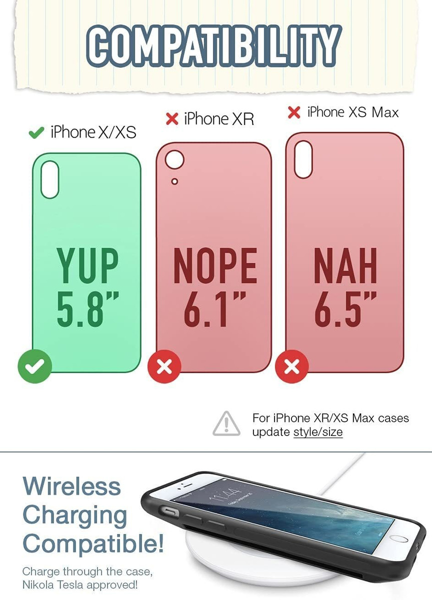 Asegura 3 tarjetas más efectivo Para las 3 personas que todavía llevan dinero en efectivo.; Laterales texturizados de alto agarre: por lo que no se cae como si estuviera caliente.; Construcción ultraligera y duradera: Delgada y protegida Debe tener un entrenador de vida.; Esquinas protectoras de airpocket – Piensa en airbags para tu iPhone.; Carga inalámbrica compatible: carga a través de la funda aprobada por Nikola Tesla. Estilo:iPhone XS / X | Color:Sabor del mes