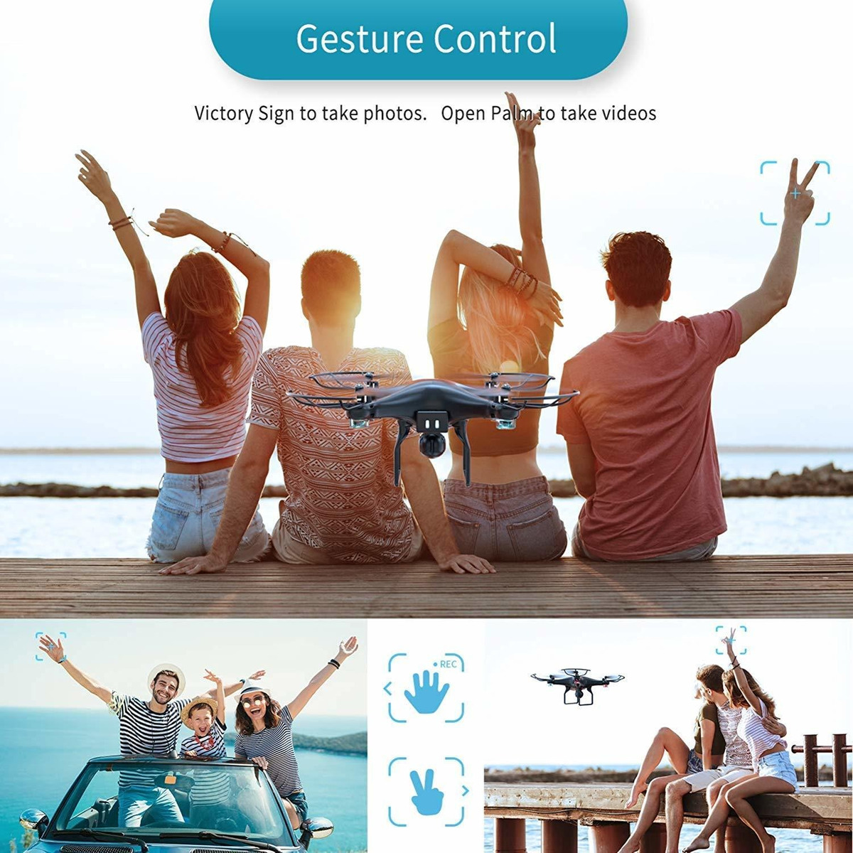 SNAPTAIN SP600 WiFi FPV aviones no tripulados con la cámara para Adultos / principiantes, RC Quadcopter w / 720P HD cámara, control de voz, Gesto de control, la gravedad de control, de mantenimiento de altitud, modo sin cabeza, una clave Take Off / Landing Inteligente de voz y de gestos de control: zánganos SNAPTAIN son los únicos parásitos con el control de voz inteligente y control por gestos. Usted puede hablar con el control de la dirección de vuelo, o poner a la cámara de foto gatillo / grabación de vídeo, añadir diversión a su vuelo; Ultra-Long Horas de vuelo: Capacidad de la batería es de hasta 1600mAh, que proporciona unos 15 minutos de muy largo tiempo de vuelo. El paquete incluye 2 baterías modulares, lo que prolonga el tiempo de vuelo hasta 30 minutos y hace que sea mucho más fácil y más seguro para reemplazar; 720P HD WiFi: Integrado con el avanzado 120 ° FOV (campo de visión) de la cámara HD 720P, este avión no tripulado captura fácilmente impresionantes imágenes y vídeos cristalinas. FPV (First-Person View) presenta en tiempo real de transmisión que clara y fluida de vídeo en vivo desde hasta 200 pies de distancia; Varios Experiencia de vuelo: El avión no tripulado no sólo puede ejecutar comandos de voz, hacer 360 ° flip truco, pero también es compatible con la trayectoria de vuelo y la gravedad de control. Puede dibujar personalizado trayectoria de vuelo en el teléfono o la experiencia de video-juegos volar de control; Fácil de volar: Con funciones como una clave Quítese / Tierra / Retorno de mantenimiento de altitud, modo sin cabeza, y 3 velocidades interruptor, el avión no tripulado es super amable a los principiantes, adolescentes y niños pares. Será automático vuelo estacionario cuando se le dio ninguna orden. Nunca fuera de control Todos nuestros productos estan en inglés SKU 8111906713