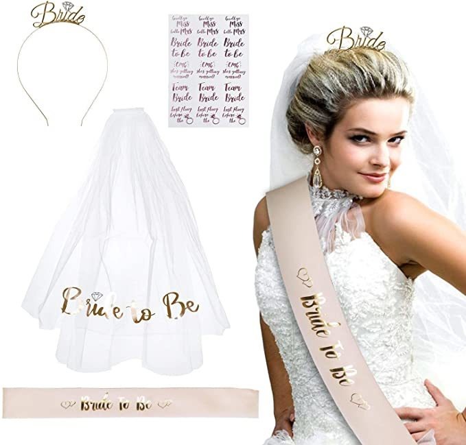 1double capas borde de satén velo en cascada con letras de oro Novia a ser bruja es el complemento perfecto para completar el look.