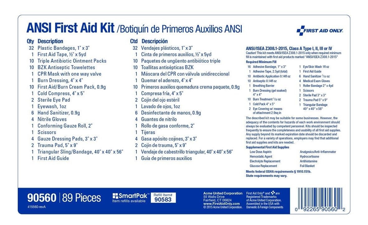 Especificaciones: Sólo Los Primeros Auxilios 90560 16 Unidad Ansi Un Kit De Pr