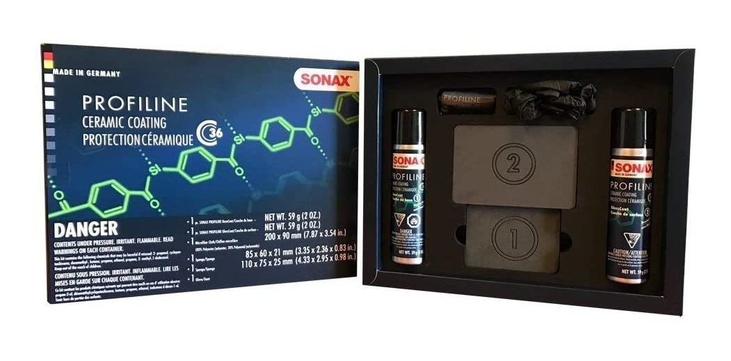Fácil de aplicar en dos etapas de recubrimiento mantas pintura de su vehículo en una cáscara de flexibilidad a la protección de ultra alto brillo; Protección para su pintura y carrocería contra la luz UV, productos químicos, sal del camino, alquitrán, y más; PRO-KIT DE GRADO DE CERÁMICA incluye todos los productos y herramientas necesarias para lograr resultados profesionales en su coche o camión; Revestimiento cerámico Professional proporciona una cubierta protectora en la superficie de su vehículo con partículas Nano-cerámica proporcionando un 3D flexible, pero resistente estructura de recubrimiento de alto brillo; 9H DURADERA cerámica de cuarzo protección que dura hasta 1 año, o hasta 3 años, cuando Sonax Polímero Net Shield se aplica cada 6 meses No Entrenamiento o equipo especial necesario bonos kit CC36 de revestimiento de cerámica Sonax para pintar la superficie proporcionando un flexible de protección a largo plazo de cristal-como acabado, pero con resistencia excepcional a la luz UV y los productos químicos. También proporciona protección a las influencias ambientales agresivas como la sal del camino, alquitrán y de la calle y la contaminación industrial. La superficie quede super hidrofóbico, actúa como un repelente de la suciedad y requiere menos esfuerzo de mantenimiento debido al efecto de «fácil de limpiar». Da un brillo profundo increíble con la intensidad del color impresionante. Cuando se utiliza en combinación con Sonax polímero escudo red, protege hasta 3 años. El uso de polímeros con Sonax escudo neto, Nº de artículo. 223300 y microfibra paños Sonax, Nº de artículo. 450.700. Todos nuestros productos estan en inglés SKU 70720079456