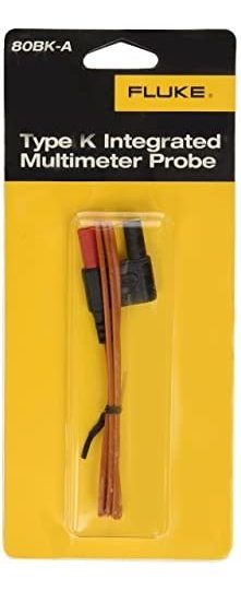 Fluke 80BKA Tipo termopar integrado multímetro digital de la temperatura de la sonda con conector estándar amortajado plátano es un cómodo construcción de una pieza uno. Es compatible con DMMs con funciones de medición de temperatura y medirá un intervalo de 40 a 260C. Cuenta con un un año.