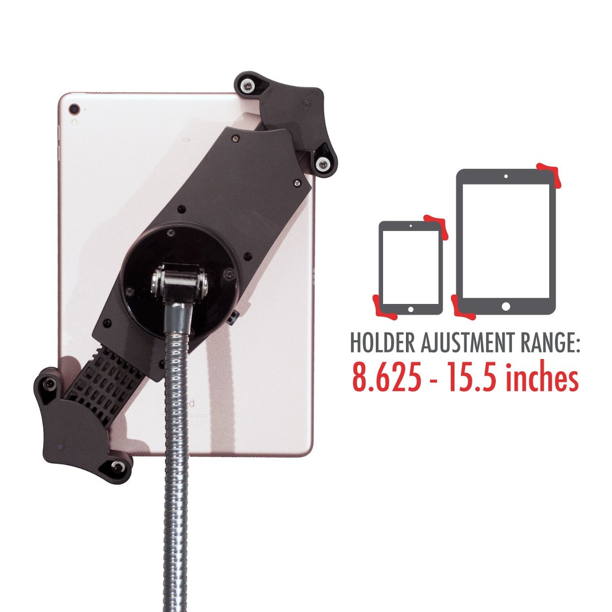 • Rango de soporte de la tableta: 8.625 – 15.5 pulgadas