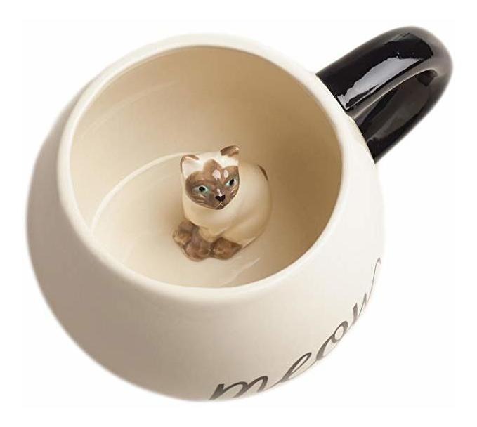 Este gato inspirado taza de café con un gato sorpresa en su interior es ideal para las personas que son grandes amantes de los gatos. Esta taza linda puede contener 17 oz de líquido y seguro para ser colocado en el lavavajillas.