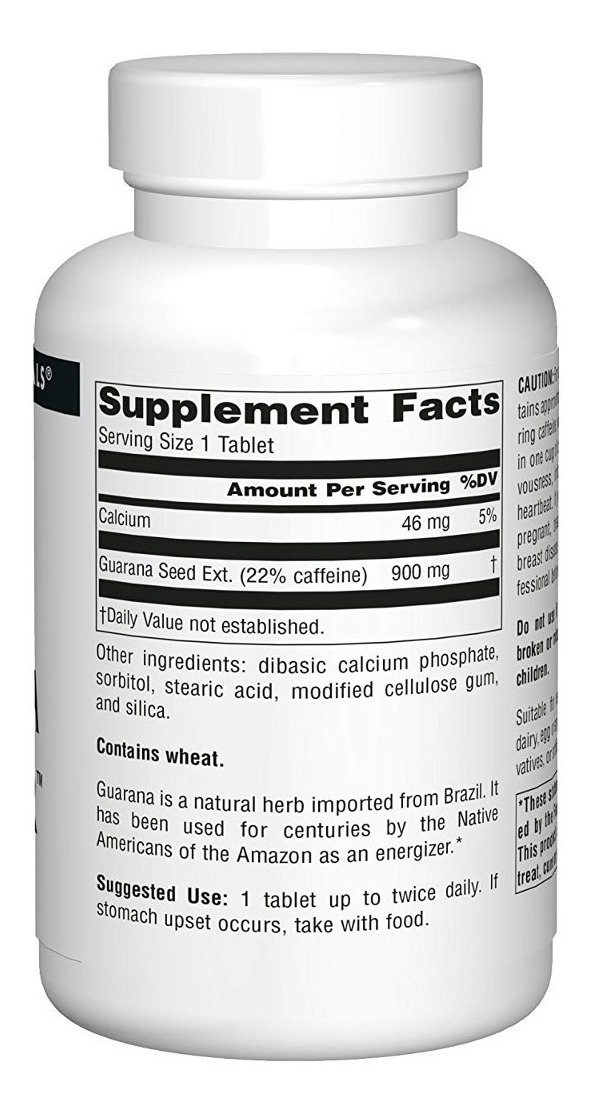 Especificaciones: Source Naturals Guarana Energizer 900 Mg De Cafeína Pura Bra