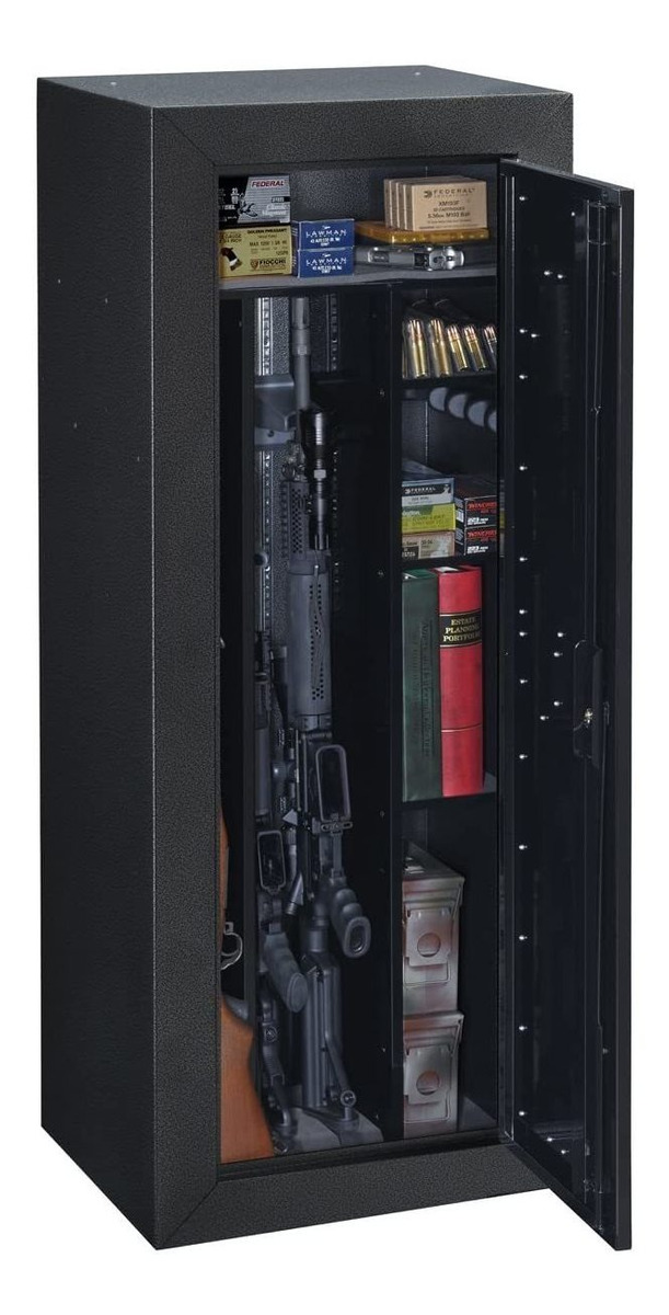 clóset para 2-tactical armas y rifles o escopetas de estándar de hasta 14; Un completo ancho estante de acero y mitad extraíble de 3 estantes están incluidos; 3 sistema de bloqueo con llave con cerradura de cilindro; Incluye barril ajustable descansa que son ampliado para dar cabida a la mayor profundidad necesaria para almacenar Tactical armas; Puede convertir las áreas para estantes para guardar munición, pistolas u otros artículos Todos nuestros productos estan en inglés SKU 91221002326