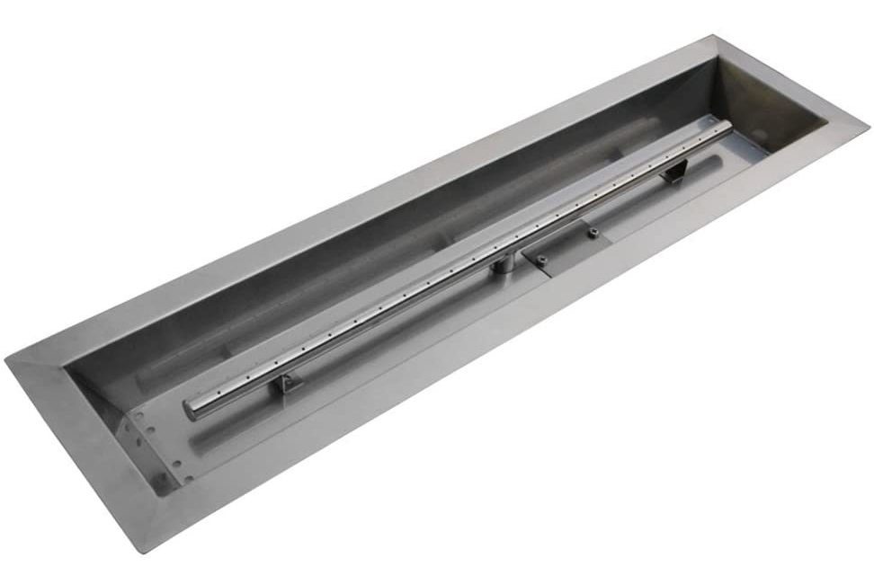 Dimensiones: 30 x 6 pulgadas rectangular Tazón Drop-In Fire Pit Pan; Material: pozo de fuego sartenes están hechas de 100% acero inoxidable # 304 con una brida de 1 1/4 superior; Diseño: soldado lineal del quemador, macho 1/2 pulgadas de entrada de gas, 54, 000 BTU / hora calificación máxima; Aplicabilidad: Natural gas; propano (LP); Contenido del paquete: 26 quemador lineal; 30 x 6 Pan, incluye placa de montaje adicional para el encendedor opcional (no incluido encendedor) Todos nuestros productos estan en inglés SKU 4032119870