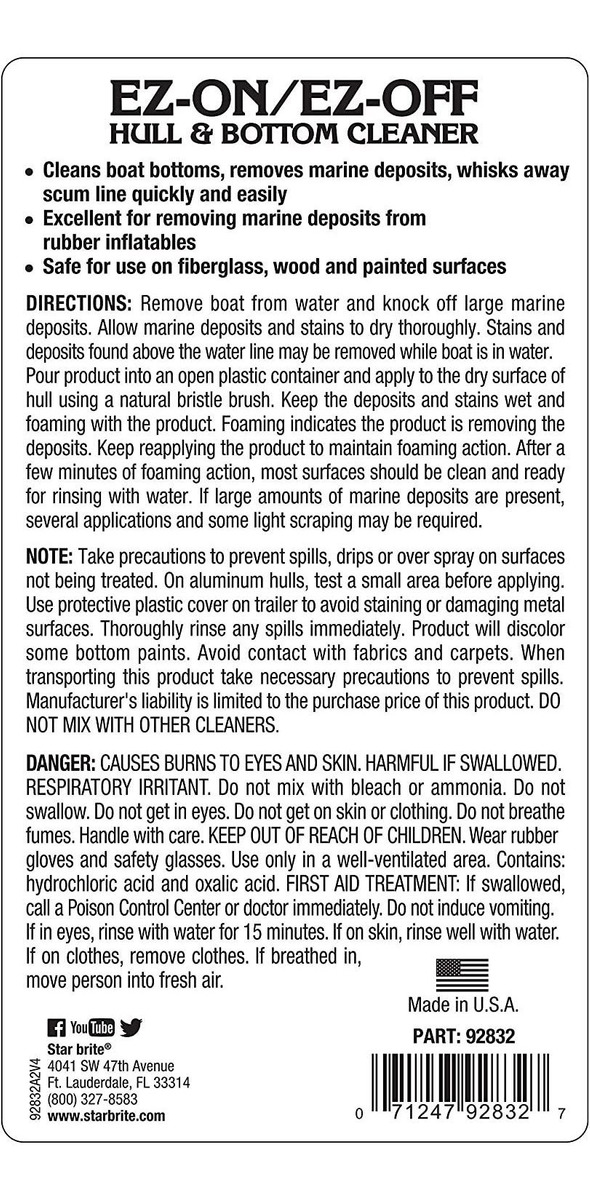Elimina los depósitos en fondos de botes, líneas de suciedad y manchas de óxido rápida y sencilla; a base de agua, fórmula; Especial patentado amortiguar proceso hace que este producto más seguro que otros limpiadores de fondo a base de ácido; 32 oz Todos nuestros productos estan en inglés SKU 7072008843