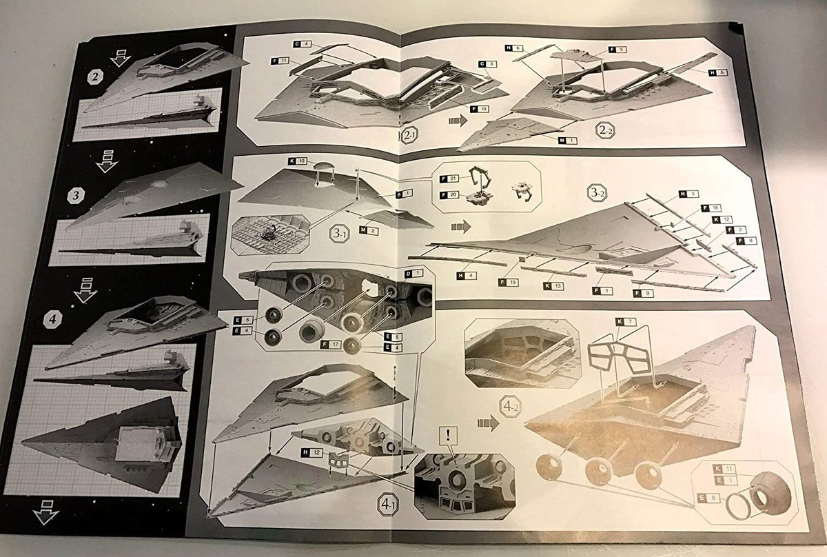 105 partes / tamaño de 60 cm; Piezas de plástico / Escala 1/2700; Edad recomendada: 10 / Nivel: avanzado; La mejor idea para fan de Star Wars; NOTA de que el pegamento y la pintura no están incluidos en este conjunto Destructor es una nave de capital en el universo de Star Wars. La clase Imperial Destructor es el recipiente de la firma y la mayor parte de la nave espacial eficiente de la flota Imperial. Cada uno se puede emplear independientemente tanto como una base de operaciones y como plataforma de sistemas de armas móvil responsable de salvaguardar múltiples planetas, rutas y sistemas comerciales, y se llevaron potencia de fuego suficiente para someter a todo un sistema planetario o aniquilar a una pequeña flota rebelde. Destructor Estelar Imperial tiene el casco básico triangular; los exitosos diseños en forma de V se explican en Leyendas como procedentes de influencia Sith, y han sido adaptados por numerosas facciones para una amplia variedad de aplicaciones. Debido a su tamaño y armamento es el arma universal en la supresión de la resistencia de los mundos enteros. Tiene sólo las mejores tripulaciones, y puede estar en las expediciones autónomos para un largo tiempo. El armamento de la nave consta de baterías pesadas turboláser y cañones de iones, así como numerosas pistolas láser y la luz de iones. Destructor Estelar Imperial transporta cazas imperiales, interceptores y bombarderos, así como grandes fuerzas anfibias, incluyendo: caminantes tierra, infantería y apoyar buques anfibios. Que la fuerza esté con usted! Todos nuestros productos estan en inglés SKU 403215949