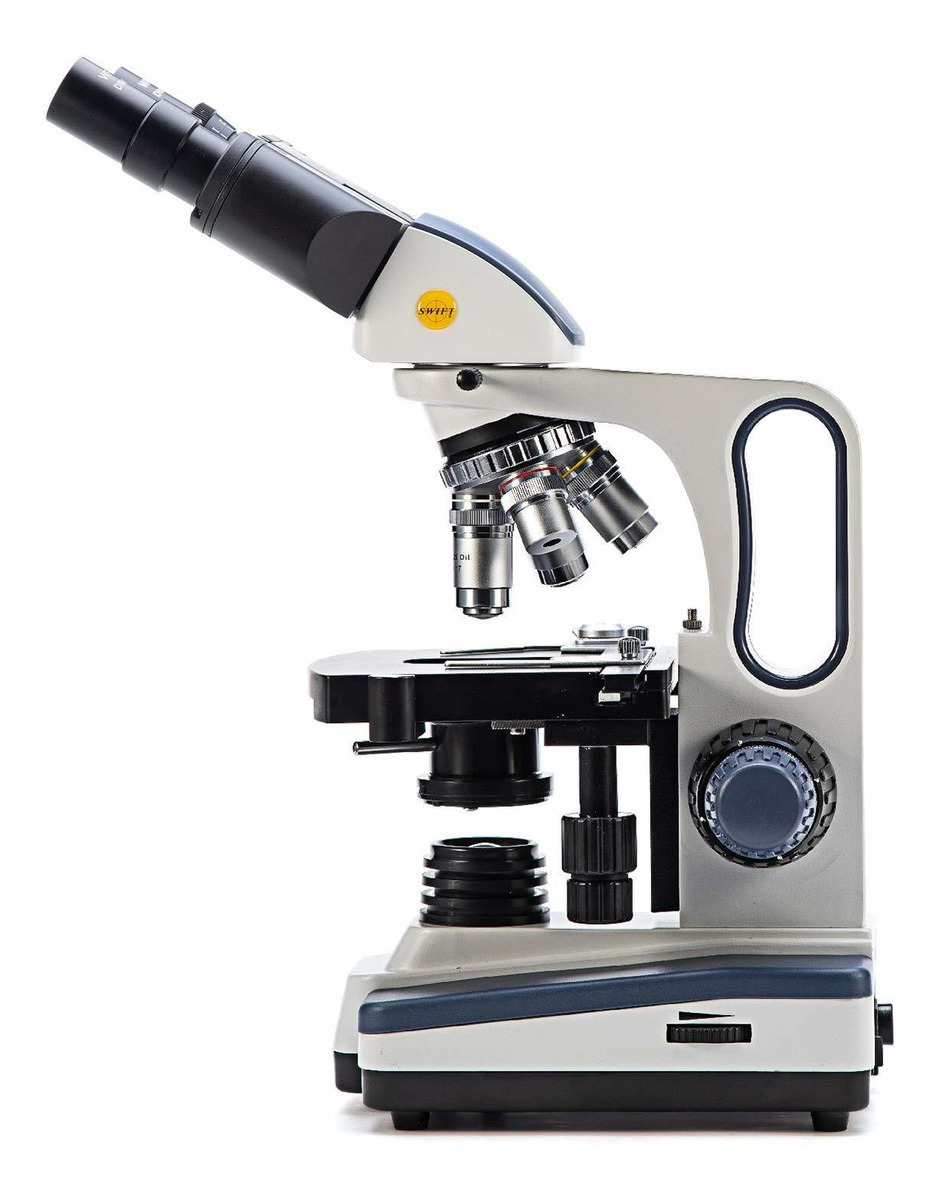 Un potente microscopio compuesto de usos múltiples para la visualización de pequeños detalles de portaobjetos; excelente para los médicos, la escuela secundaria y estudiantes universitarios de ciencias y aficionados entusiastas por igual; Siedentopf profesional cabeza binocular se puede girar para uso compartido y están equipadas con intercambiables de gran campo 10X y 25X oculares de vidrio fijo a una inclinación de 30 grados ergonómico para reducir la tensión del cuello, fácilmente ajustable para diferentes distancias entre ojos sin perder el foco; 4 objetivos DIN acromáticos montados en una torreta giratoria oferta 6 niveles de ampliación: 40X, 100X, 250X, 400X, 1000X y 2500X; La bombilla LED brillante transmite luz a través de un condensador de Abbe manualmente ajustable, iluminando las muestras de diapositivas desde abajo con brillo ajustable; la gran área superficial de la etapa mecánica de doble capa y soporte de diapositivas seguro optimizar diapositivas para visualización; Asa de transporte ayuda a los usuarios del transporte este microscopio sólida construcción Todos nuestros productos estan en inglés SKU 6081934156