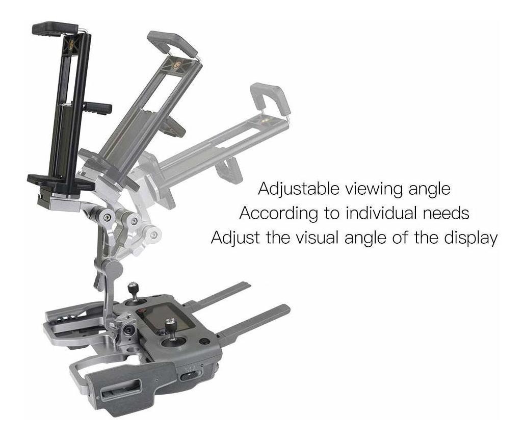 De aleación de aluminio Material Hecho, tecnología CNC, accesorios de diseño de alta calidad Compatible perfecto con DJI Mavic Pro 2 / Mavic 2 Zoom / Mavic aire / Mavic Pro / Platino / Spark mando a distancia .; Para longitud teléfono inteligente estirable: aproximadamente 54-83mm, conveniente para 3.5-5.5in Smartphone; para la tableta longitud estirable: aproximadamente 110-190mm adecuado para 7-10in Tablet; Diseño plegable para un almacenamiento cómodo con ángulo de visión ajustable de acuerdo a las necesidades personales; Se pliega en un factor de forma compacta para su almacenamiento. Fabricado en aluminio y plástico ABS de alto impacto hizo para tomar el abuso sin romper .; Viene con soporte 1 tableta y cuerda de seguridad. Todos nuestros productos estan en inglés SKU 8111913324