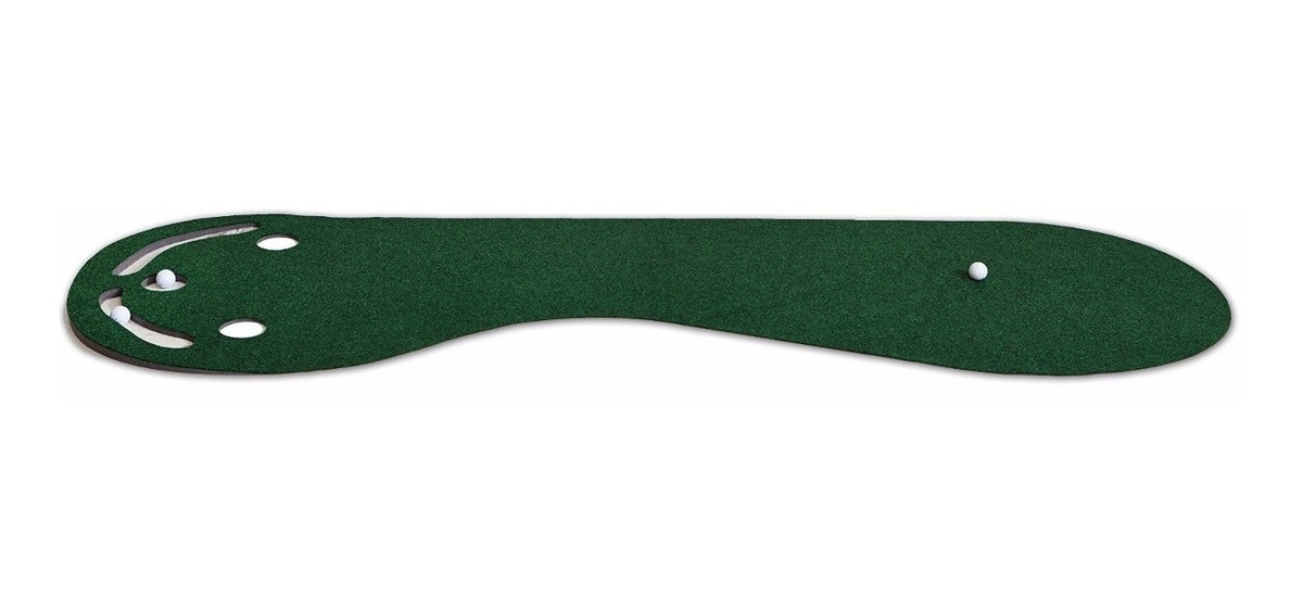 Perfeccionar sus habilidades poniendo con esta diversión .91 por 2.74 mts putting green. Tres tazas del verde en forma de riñón le dan un montón de objetivos de la práctica, mientras que las trampas de arena incorporados están diseñados para capturar tomas perdidas. El verde también ofrece una superficie que pone de alta calidad diseñado para permanecer suavizar el paso del tiempo.