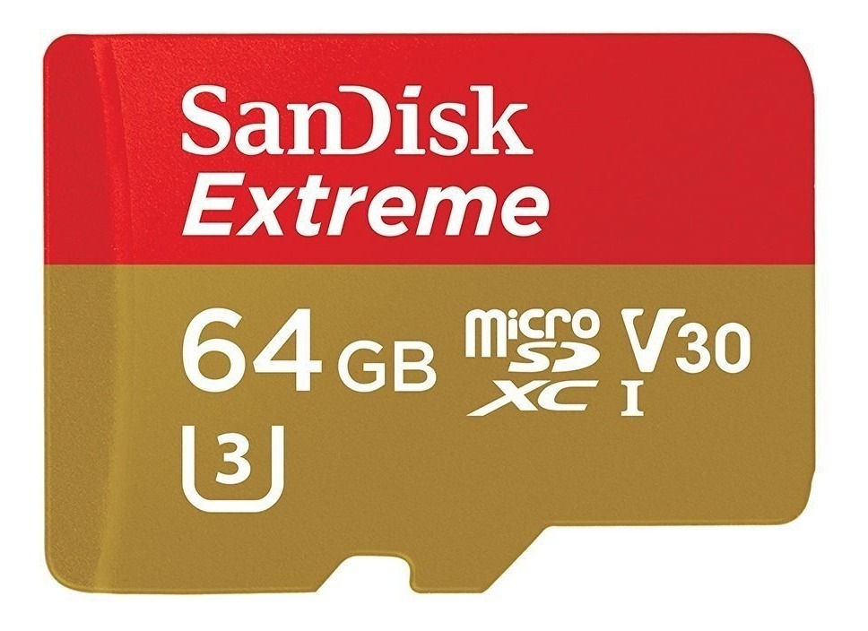 Capturar una acción más rápida y más completa grabar HD o de video 4K Ultra HD (1) con su teléfono inteligente basado en Android, cámara de lentes intercambiables o cámara de acción GoPro. La microSDXC UHS-I SanDisk Extreme tarjeta es resistente construido para la durabilidad extrema en condiciones ambientales adversas (5). velocidades extremas permiten capturar todos los detalles de la aventura y toma la espera de la transferencia de sus vídeos entre dispositivos. Una capacidad de almacenamiento de 64 GB (2) amplía la memoria de su dispositivo y le permite grabar vídeo 4K Ultra HD. Adicional Filtrado Todos nuestros productos son de Estados Unidos SKU 14021821617