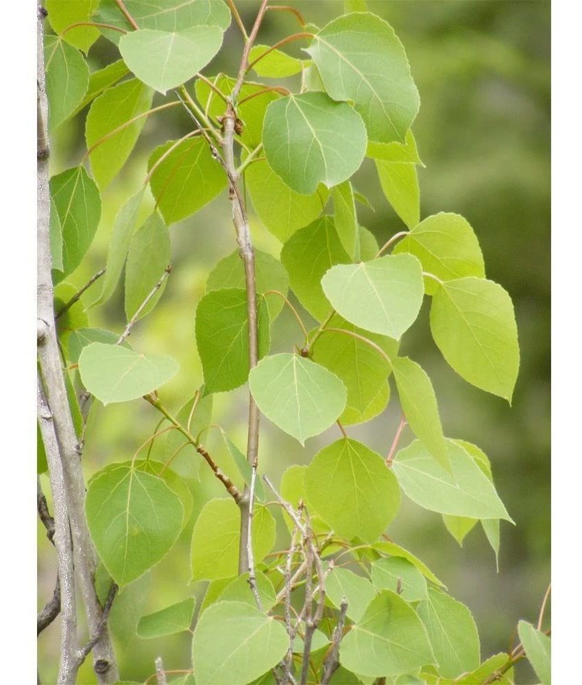 Aspens suelen ser más bien pequeños árboles, alrededor de 40 pies de altura, con un diámetro de tronco bajo dos pies de ancho. Su temblor, hojas siempre en movimiento son de color verde pálido en primavera y verano, bruñido en oro radiante en otoño. Aspen corteza es lisa y el color de blanco-ceniza. Los árboles más viejos tienen una corteza que es casi negro en la base, convirtiendo a suavizar moteado gris más alta por el tronco. Aspen corteza tiene propiedades analgésicas y anti-inflamatorias, lo que es una fuente muy valiosa de la medicina para los pueblos nativos americanos.