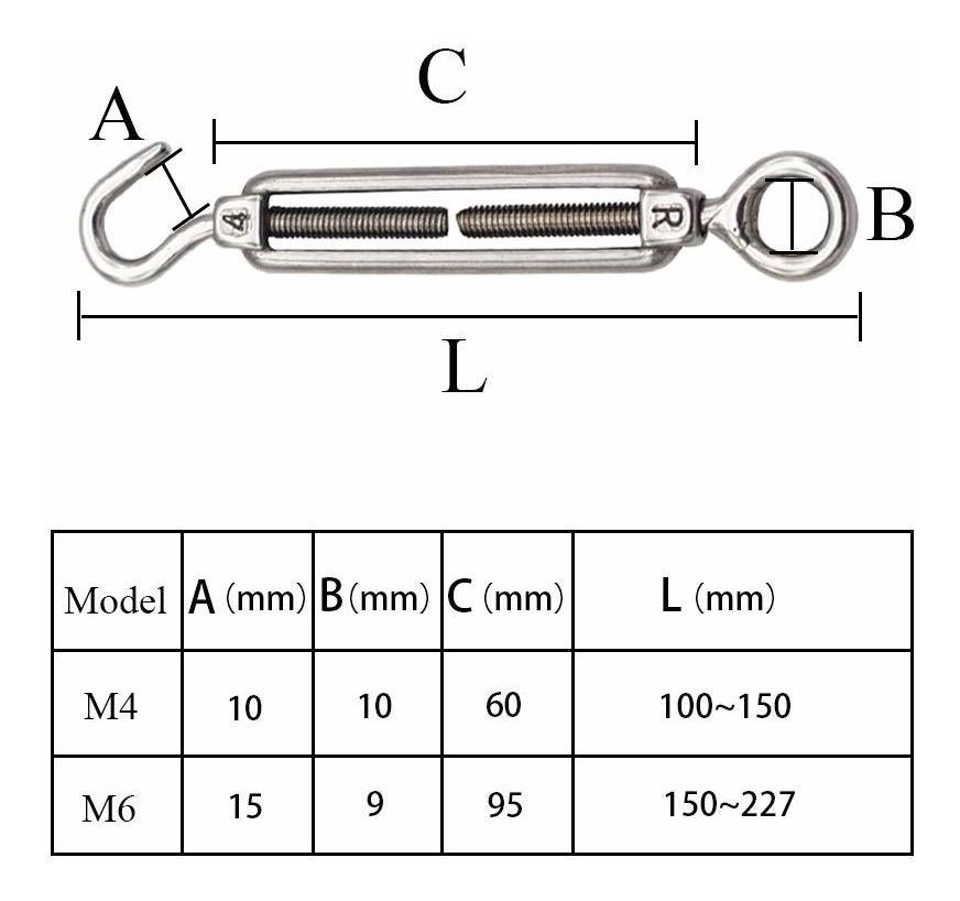 Especificaciones: Tensor M4, 304 Gancho De Acero Inoxidable Y La Luz De Los Oj