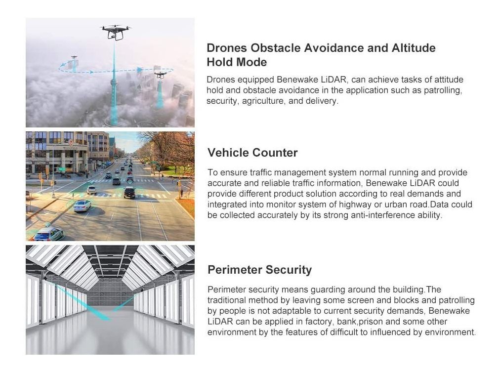 Con la luz ambiental 70Klux, lidar puede trabajar normalmente bajo una fuerte luz ambiente como medio alcance TF02-Pro y largo alcance lidar TF03-100 lidar. Todos nuestros productos estan en inglés SKU 12062119956