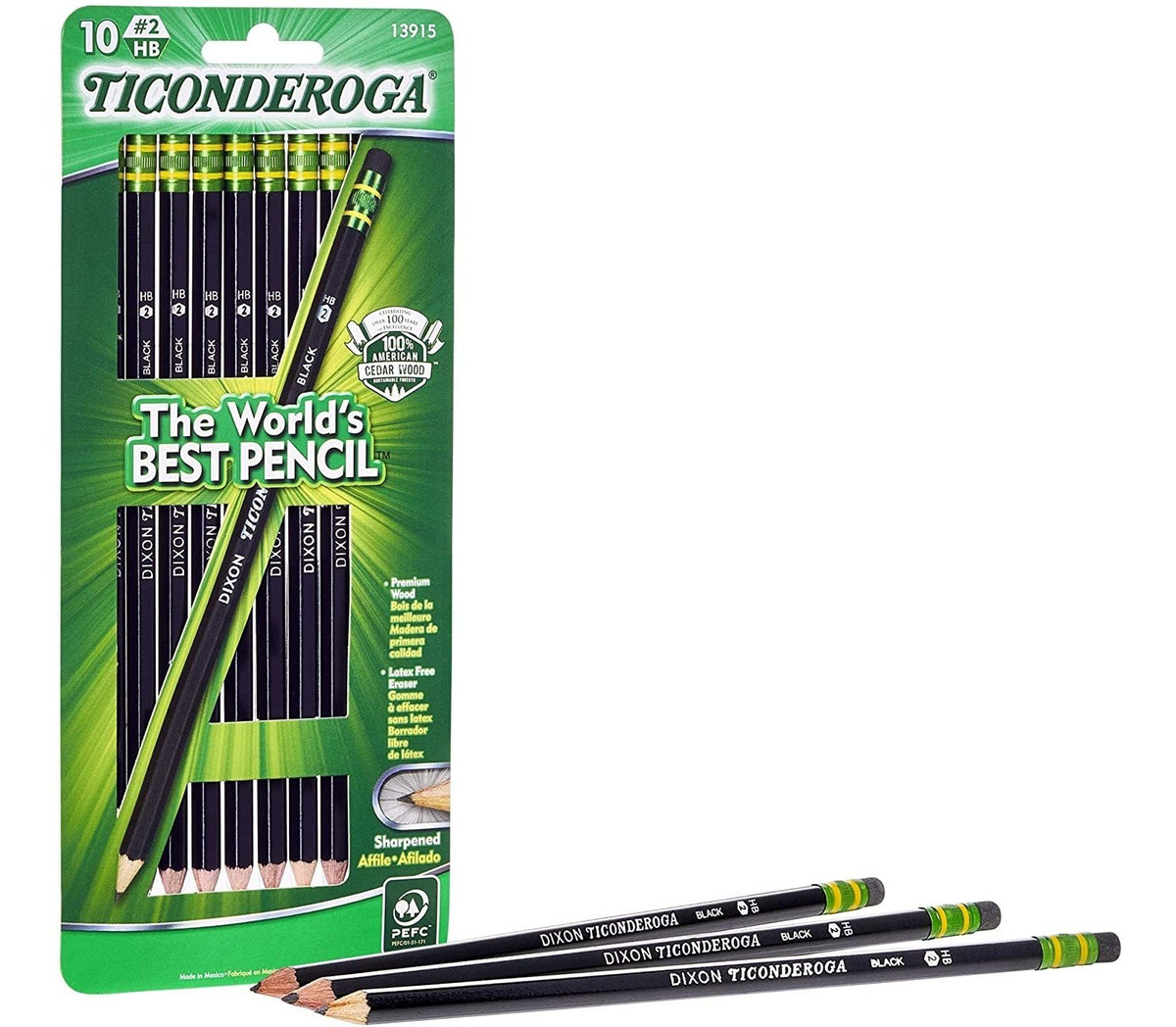Ticonderoga tiene una tradición de instrumentos de escritura de alta calidad en los EE. UU. Durante más de 100 años. El exclusivo núcleo de grafito presenta una fórmula patentada que se centra en el grafito extraído de fuentes cuidadosamente controladas para brindar un rendimiento extra suave. Las gomas de borrar sin látex de alta calidad eliminan las marcas por completo sin manchar. La madera de primera calidad extraída de fuentes gestionadas de forma responsable proporciona un afilado suave y uniforme con un mínimo de roturas. Los maestros prefieren Ticonderoga por su confiabilidad y artesanía. Cuando solo lo mejor sea suficiente, elija lápices de la marca Ticonderoga.