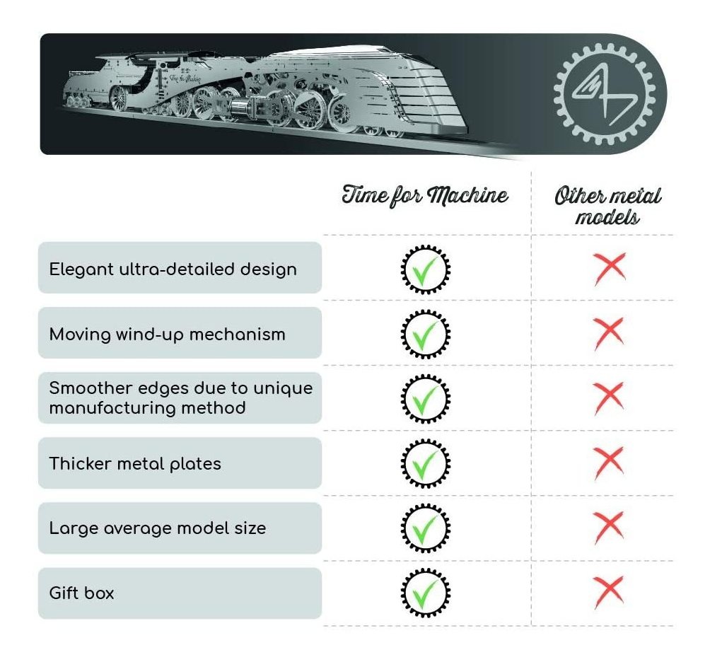 Hermosa modelo de tren Kit – Un kit del rompecabezas de metal históricamente-inspirado elegante para la construcción de bricolaje, basado en los trenes de lujo del siglo 20 .; Considerable Tamaño – Este es un modelo de tamaño moderado o grande, no un pequeño juguete (ver los detalles del tamaño de la información técnica más abajo) .; Única Wind-Up mecanismo de movimiento – Este modelo de metal tren se mueve en pistas, cuenta con un mecanismo basado en un resorte y la palanca de cuerda .; Los elementos exclusivos como las pistas, vagón de tren adicional e iniciar / palanca de parada – Elementos interactivos adicionales; De alta calidad de la construcción del metal – El kit de modelo de tren está hecho de acero inoxidable, tiene un alto nivel de producción y de diseño .; Increíble decorativo de Colección – Perfecto para cualquier escritorio, estante u otra superficie. Grande en cualquier interior .; Caja de regalo – Viene con el empaquetado elegante, haciendo que el regalo perfecto para cualquier persona en su vida .; Diversión DIY Construcción – Grande para cualquier entusiasta modelo de construcción, bricolaje proceso de acoplamiento. Todos nuestros productos estan en inglés SKU 403212892