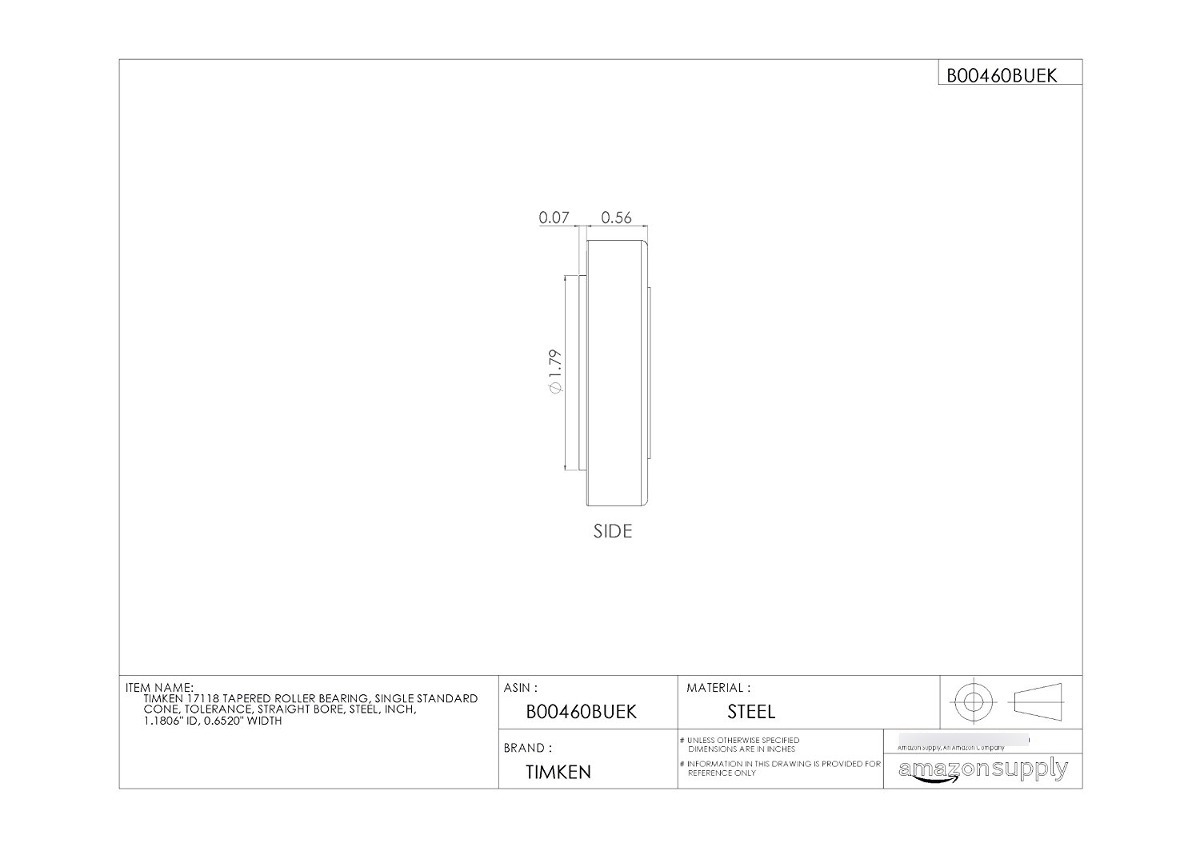 Specification: Timken 17118 Cojinete De Rodillos Cónicos, Cono Individual,
