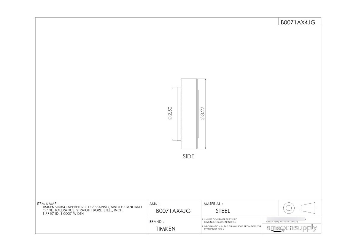 Specification: Timken 25584 Cojinete De Rodillos Cónicos, Cono Individual,