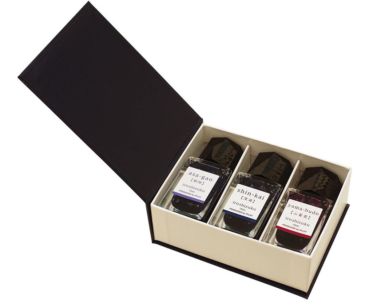 Color: asa-gao, shin-kai, yama-budo Pilot iroshizuku, 3 colores de tinta pluma estilográfica Set B Todos nuestros productos estan en inglés SKU 91221061842